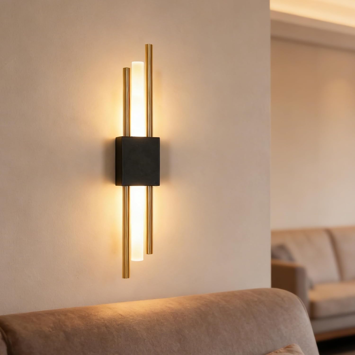 Dzięki nowoczesnemu i eleganckiemu designowi ten czarno-złoty kinkiet LED nadaje się do wielu pomieszczeń, takich jak: