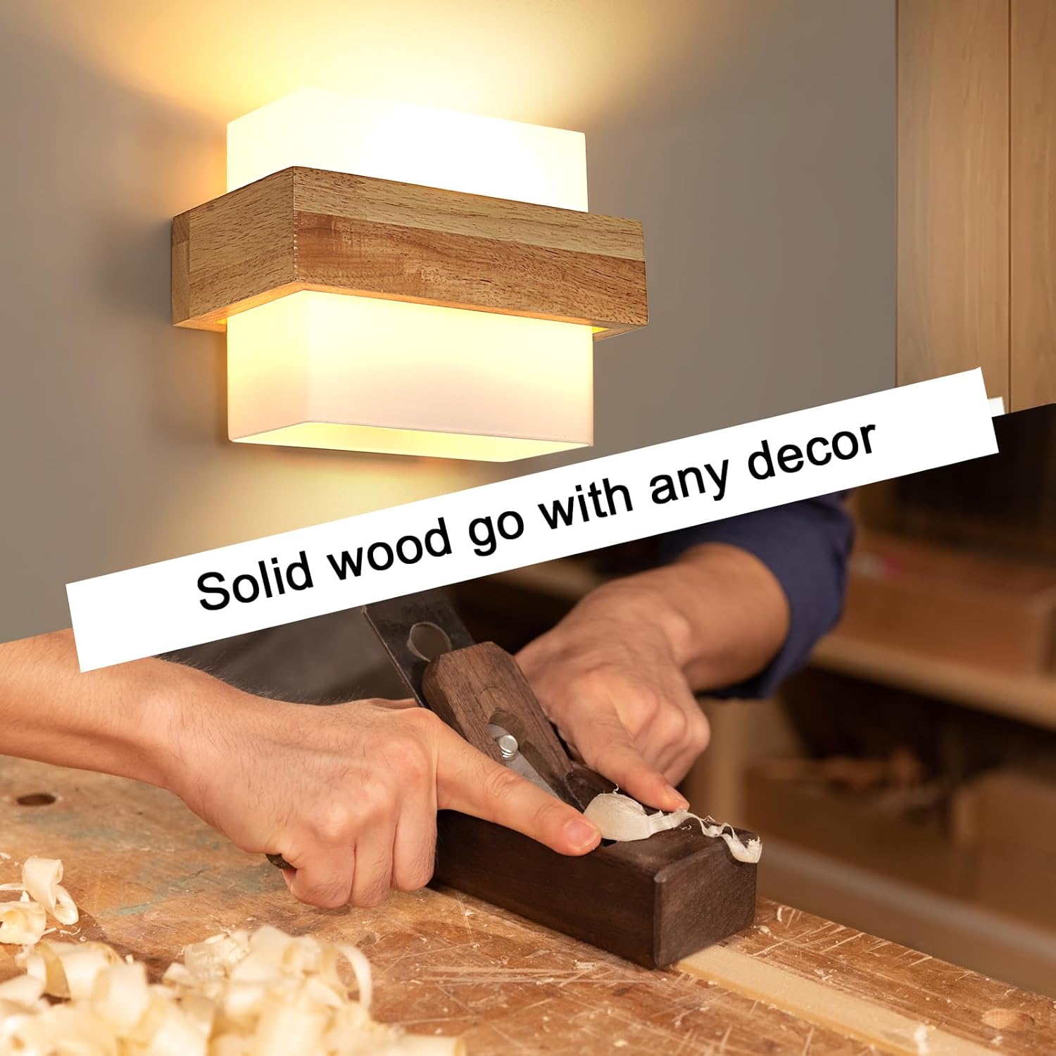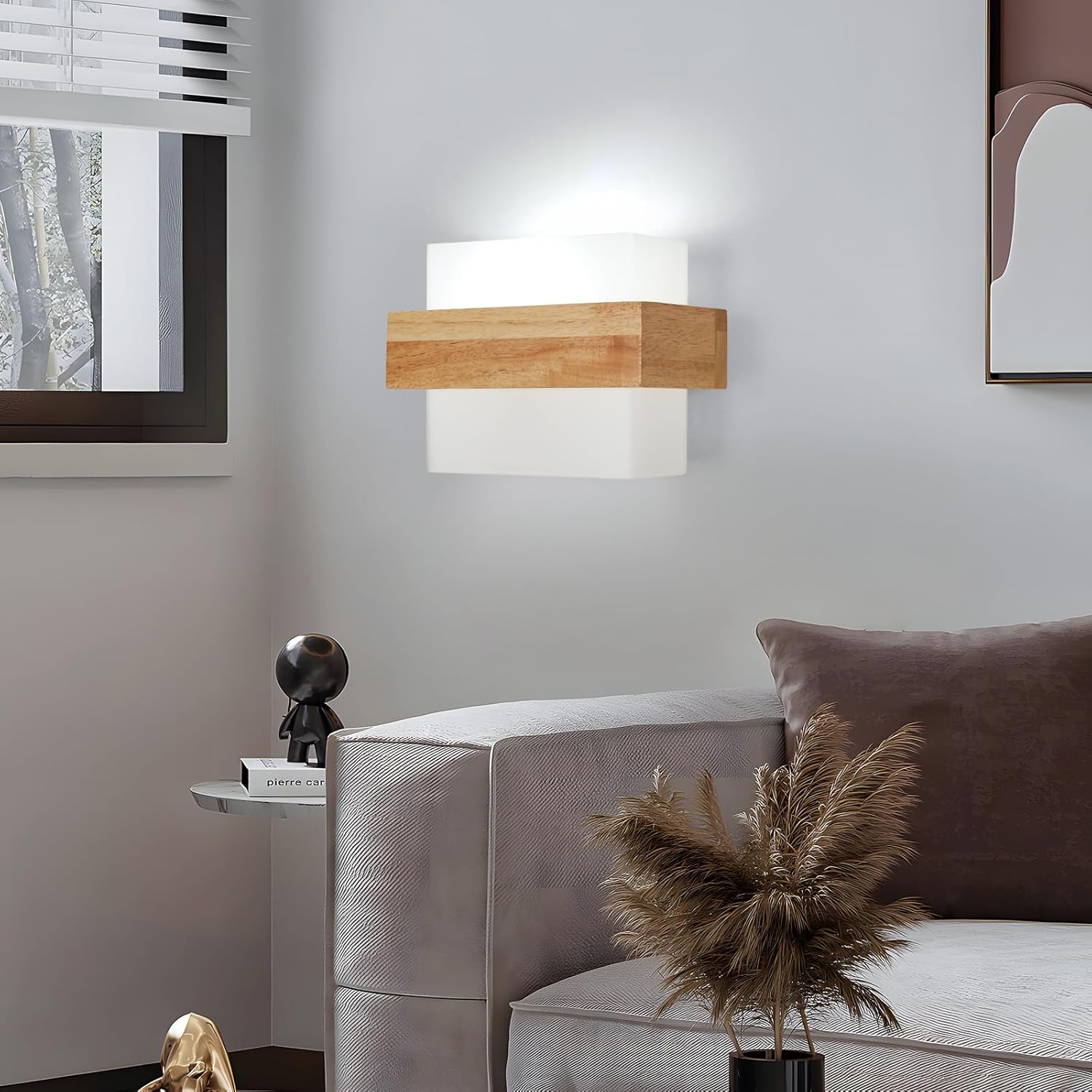 Ta wewnętrzna lampa ścienna łączy nowoczesny, minimalistyczny design z naturalnymi materiałami, tworząc eleganckie i przytulne oświetlenie do różnych pomieszczeń. Kwadratowa podstawa z litego drewna w połączeniu z białym szklanym kloszem nadaje lampie prosty, a jednocześnie stylowy wygląd, który łatwo dopasować do wielu aranżacji wnętrz. Zamontowana w sypialni, salonie, korytarzu lub przy schodach, stanowi zarówno praktyczne źródło światła, jak i dekoracyjny element przestrzeni.